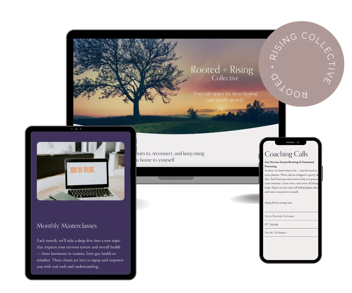 The Rise + Reset framework helps you honor your body, support your hormones, and calm your nervous system so you can feel like yourself again.